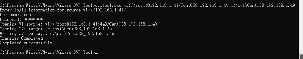 ovftool.exe vi://root:@192.168.1.41/CentOS8_192.168.1.49 c:\ovf\CentOS8_192.168.1.49