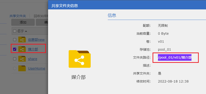 上面的“目标目录名称”填写目标端文件夹的绝对路径,可以在目标端的文件夹信息中查看,如下图