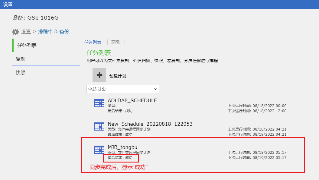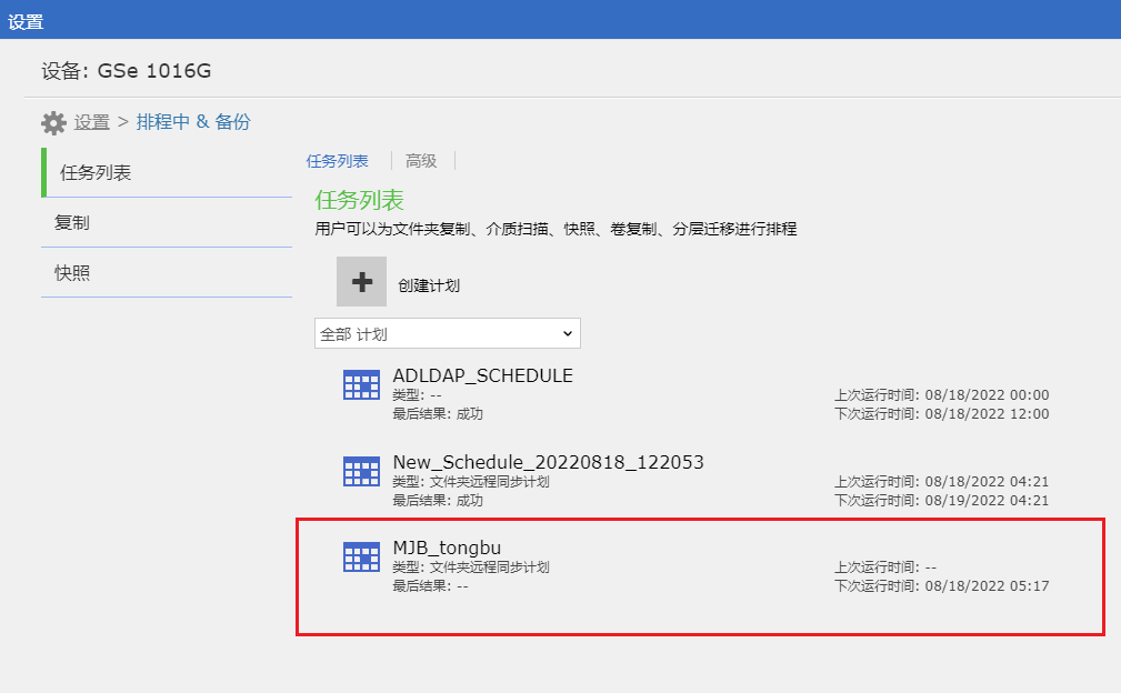 计划创建完成后,在同步计划任务列表中,即可查看到刚刚建立的计划